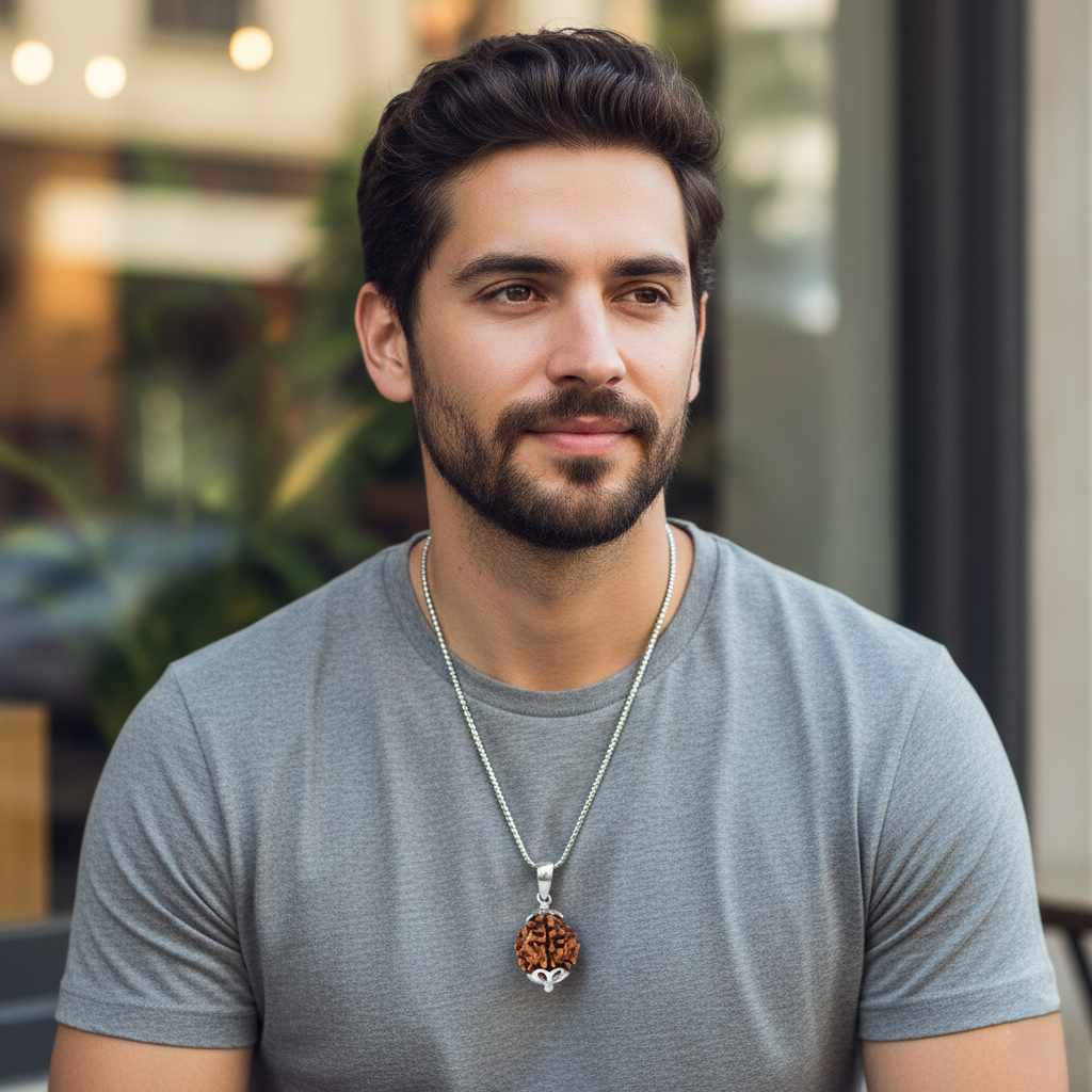 The 4 Mukhi Rudraksha is traditionally associated with Lord Brahma, the creator, and represents knowledge, creativity, and clarity of thought. The neat silver finish enhances the spiritual energy of the Rudraksha while making it suitable for both traditional and modern styles.