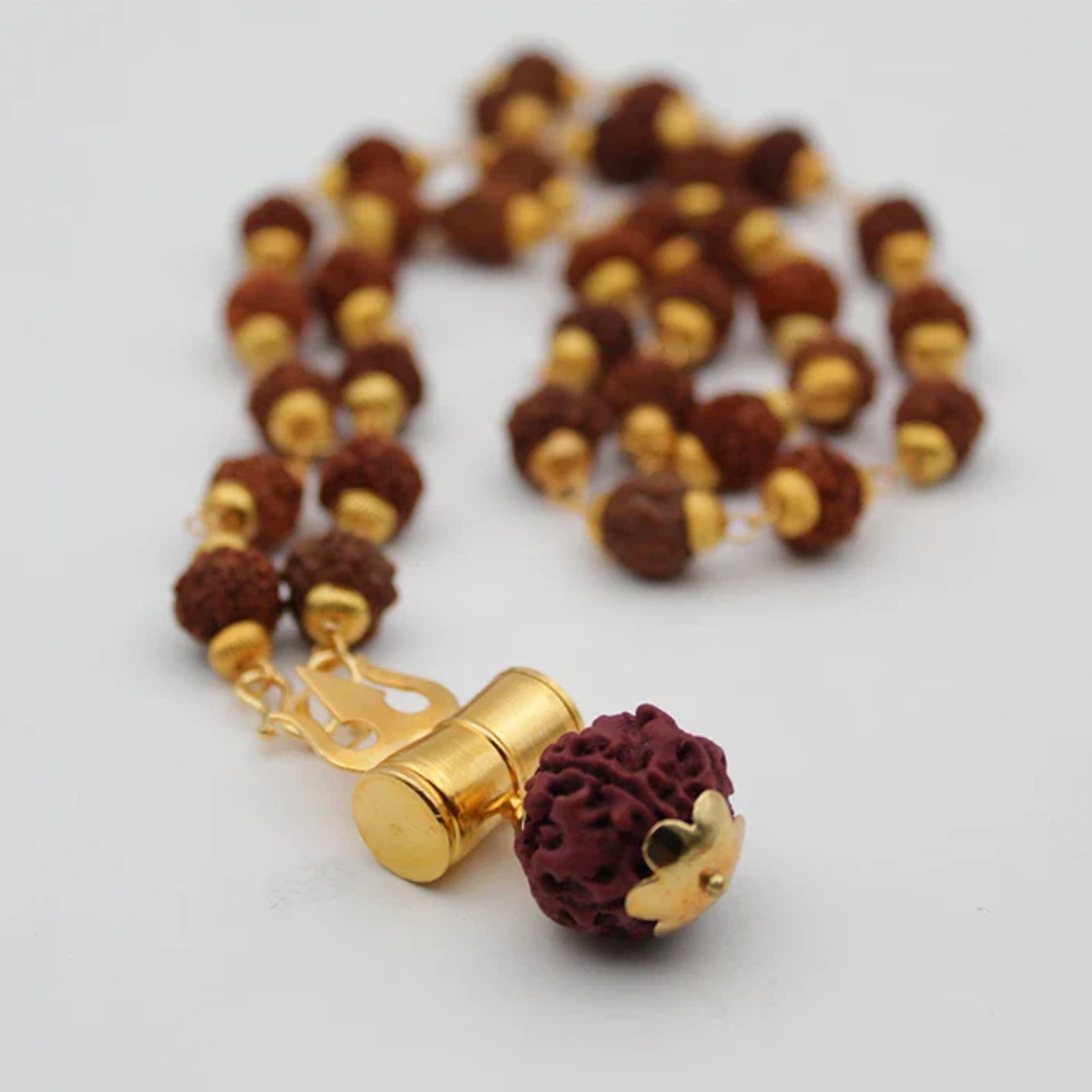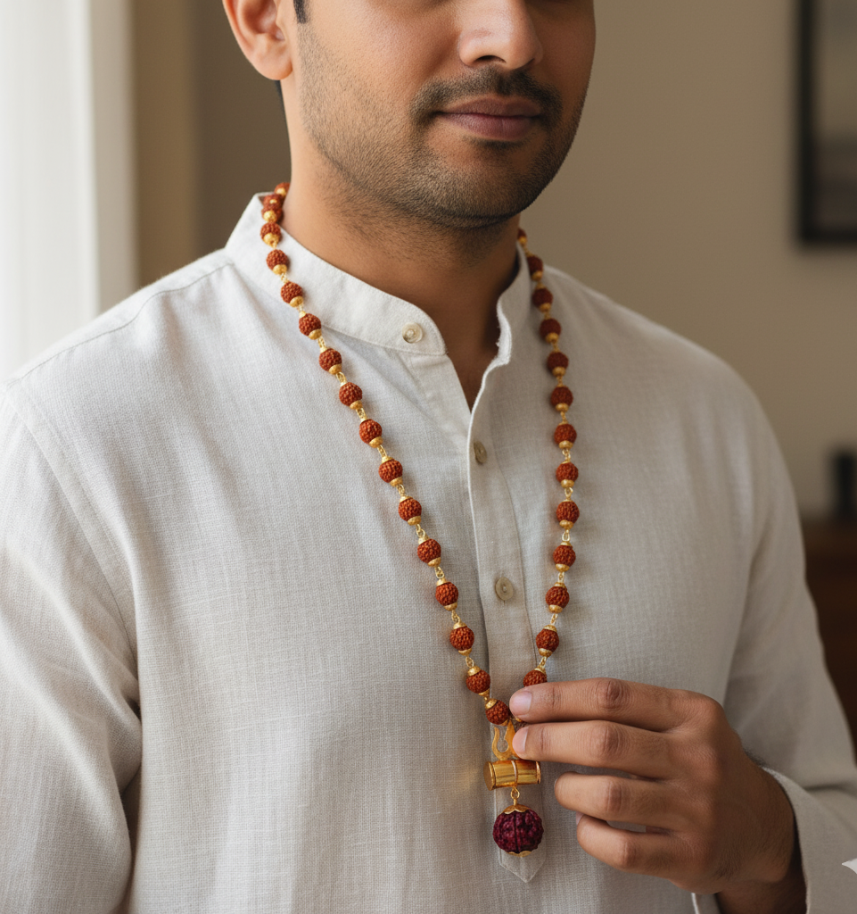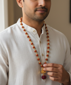 The 5 Mukhi Rudraksha is associated with Lord Kalagni Rudra, a form of Lord Shiva, and is traditionally believed to promote peace of mind, good health, and spiritual growth. This necklace is ideal for devotees of Shiva and anyone seeking positivity, stability, and protection in life.