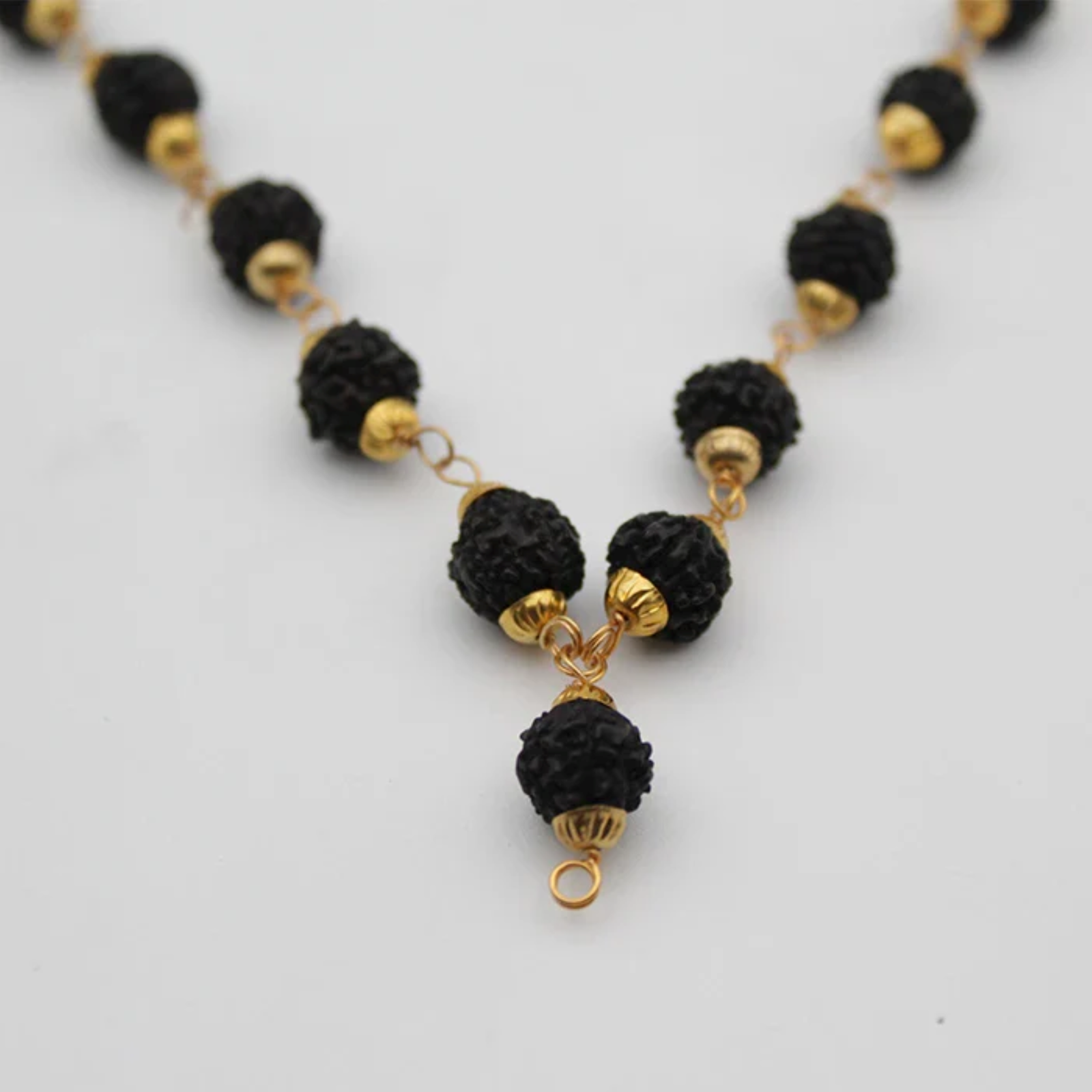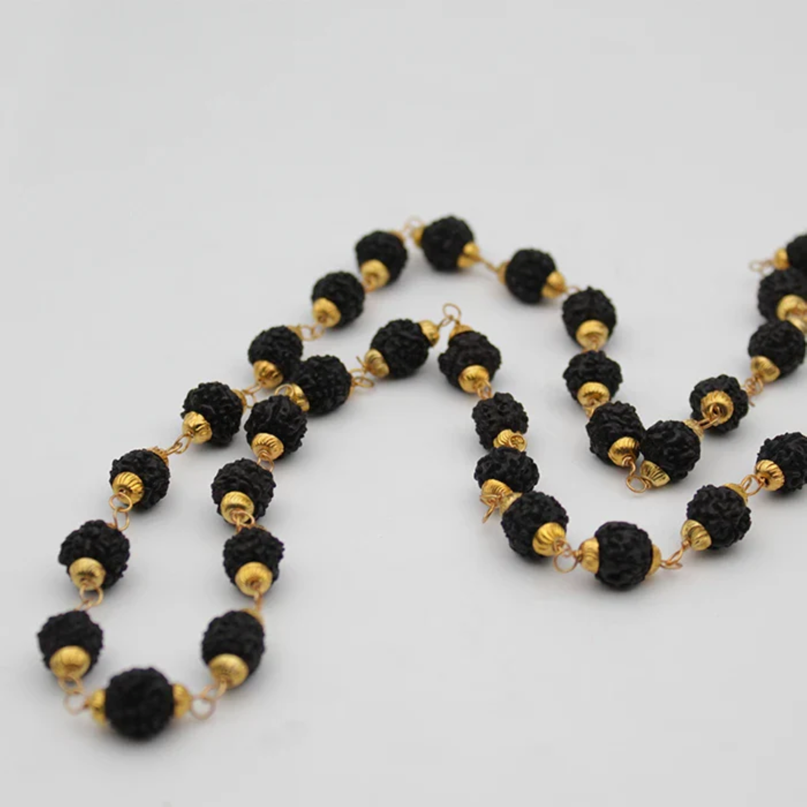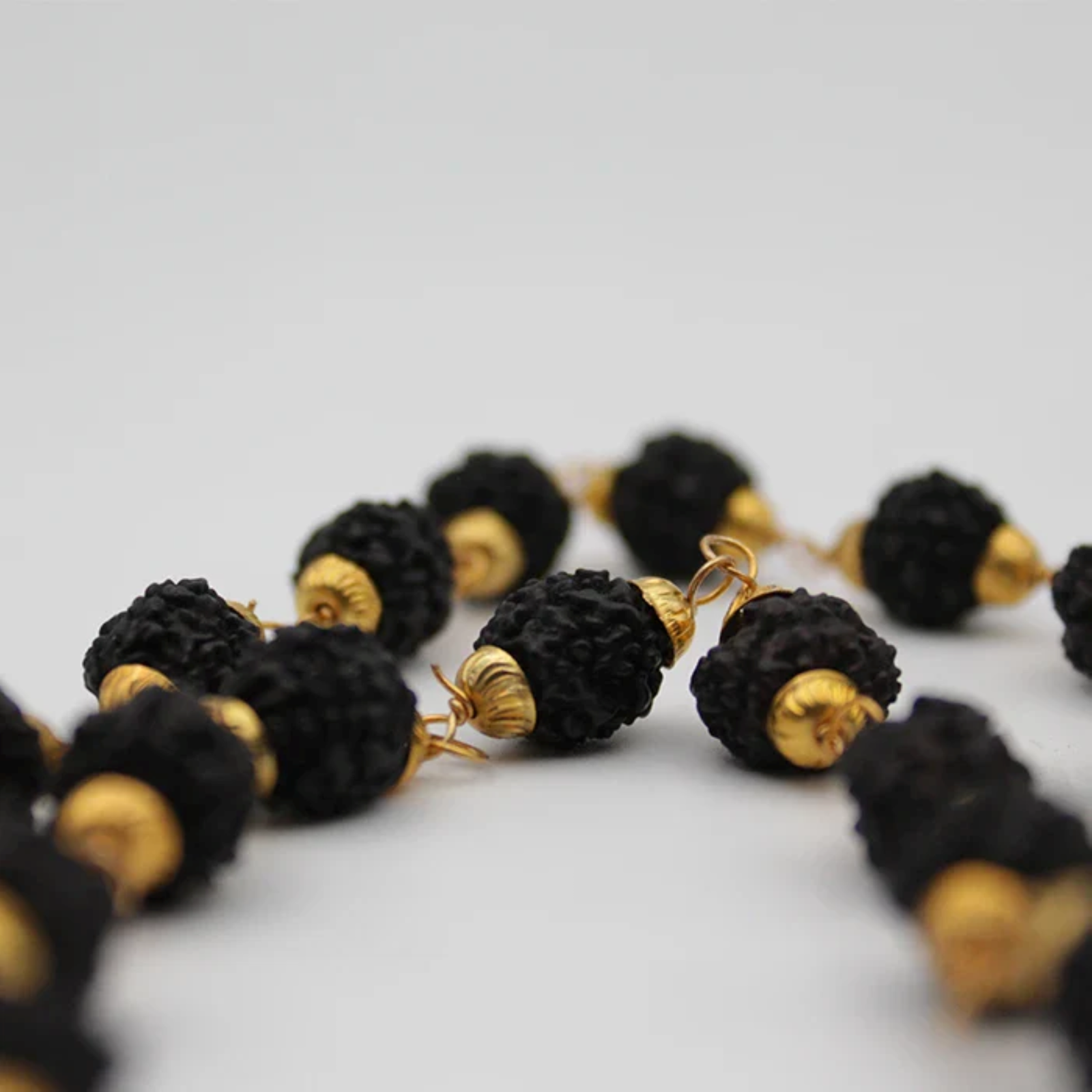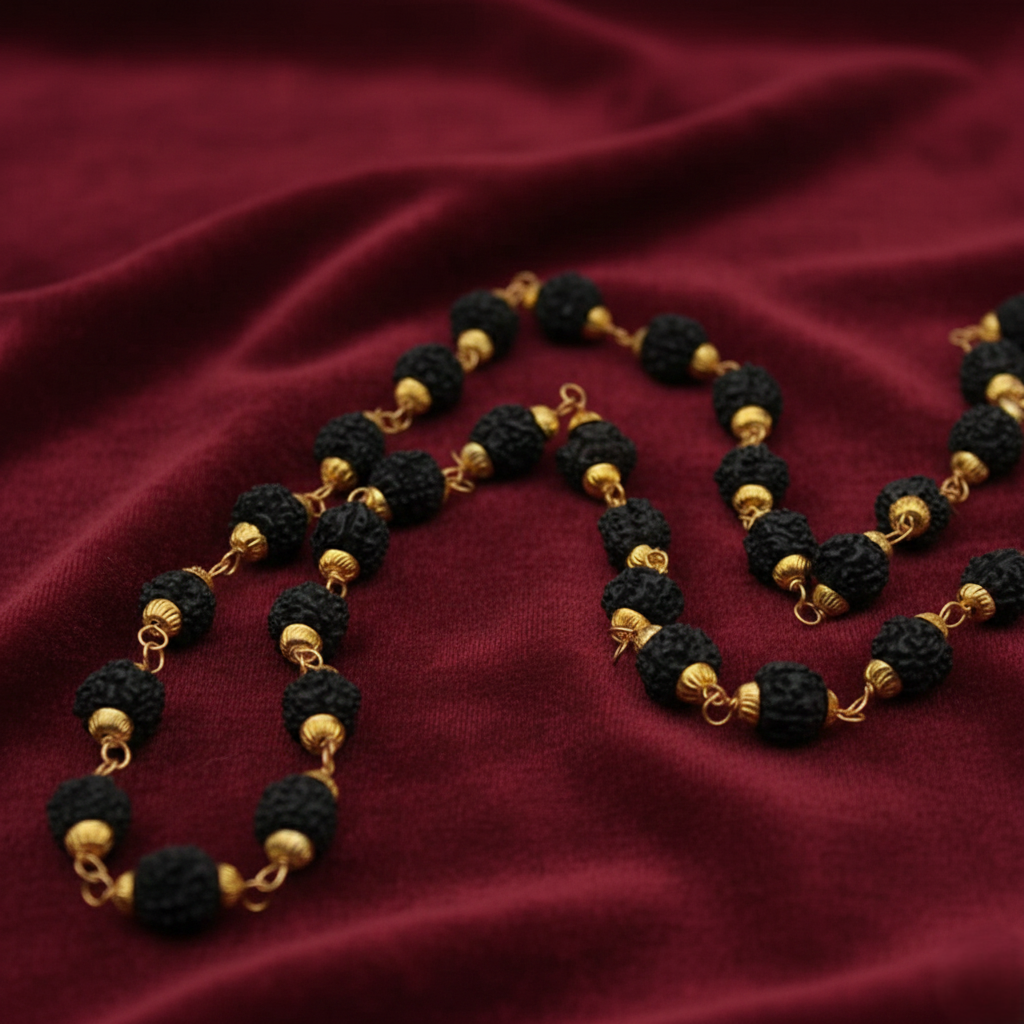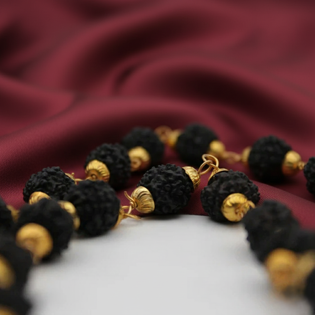 - Natural black Rudraksha beads with authentic texture