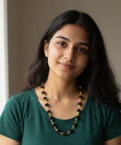 When worn, the necklace offers a calm, spiritual aesthetic without being overpowering—perfectly complementing casual outfits, ethnic wear, or minimalist fashion. The overall design feels subtle, classy, and spiritually meaningful, making it suitable for meditation, gifting, or everyday adornment.