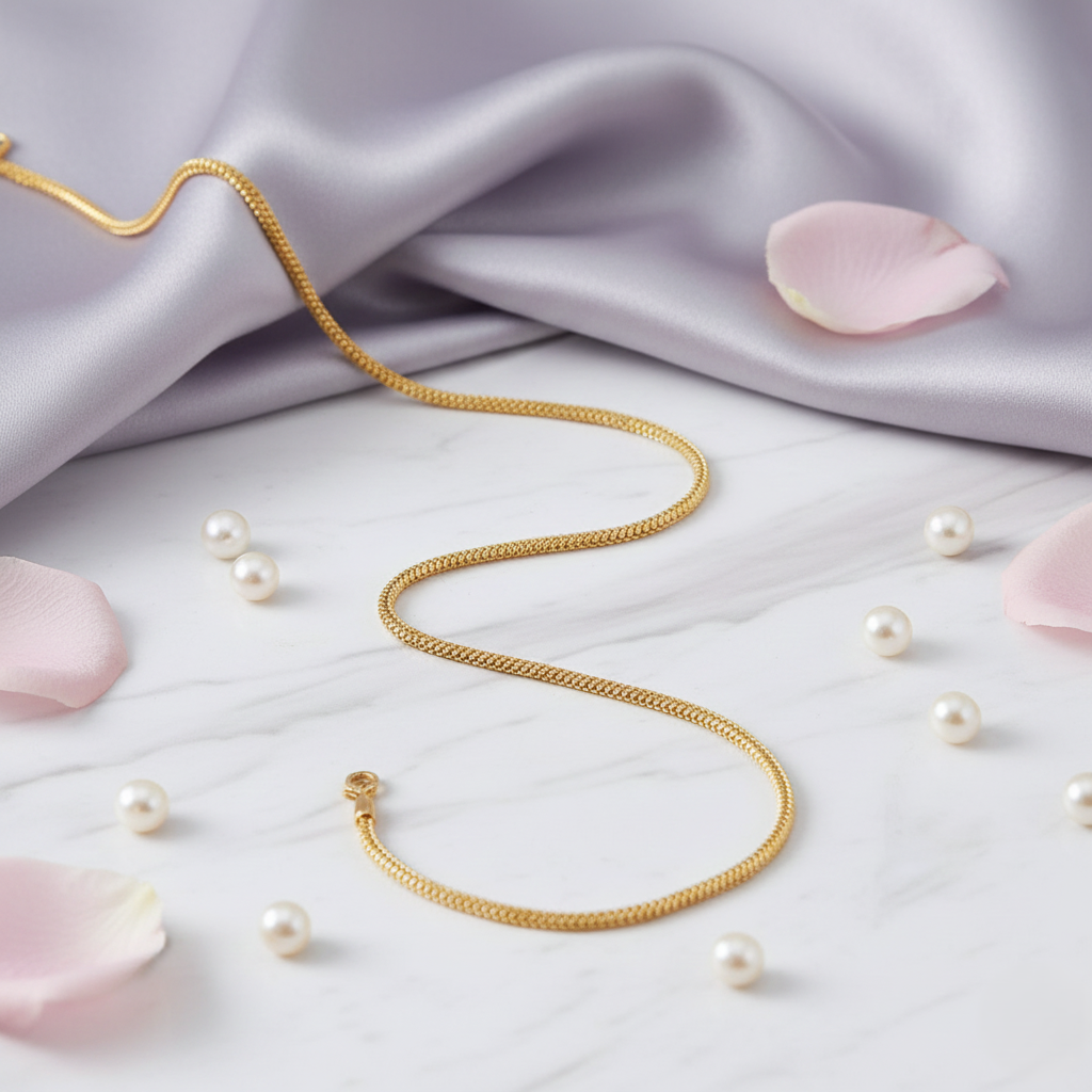Elevate your everyday look with this timeless gold plated Slim chain necklace. Featuring a classic Slim Neck Chain design, this piece reflects light beautifully for a rich, polished finish. Lightweight yet eye-catching, it’s perfect for wearing solo for a sleek statement or layering with other necklaces for a modern vibe. Designed to complement both casual and dressy outfits, this versatile chain is a must-have addition to any jewelry collection.