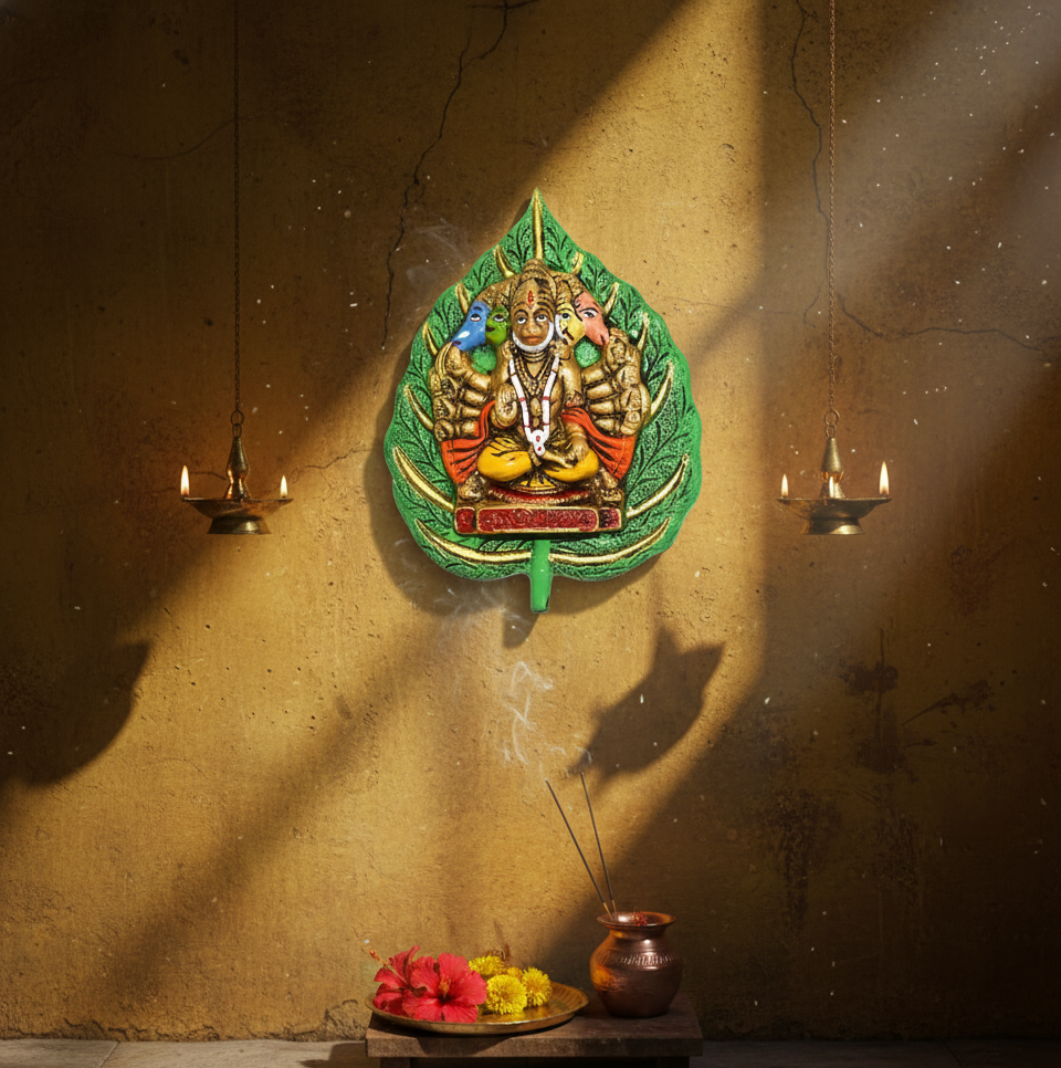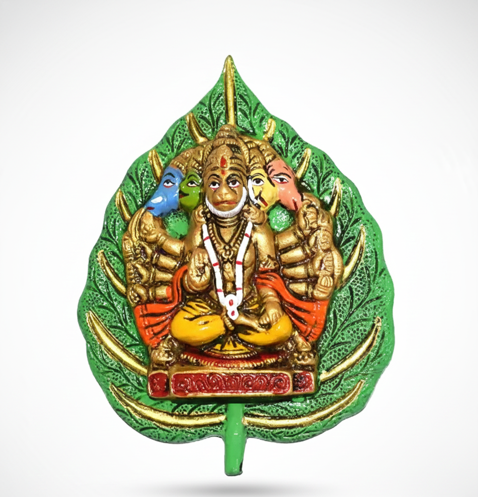 Divine Panchmukhi Hanuman Handcrafted Wall Hanging on Peepal Leaf