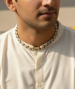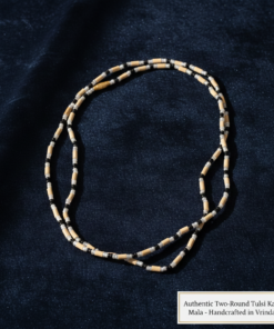 This exquisite two-round (double-layer) Tulsi Kanthi Mala is a symbol of spiritual devotion and purity. Meticulously handcrafted from the wood of the sacred Tulsi (Holy Basil) plant, this mala is designed to be worn closely around the neck as a “Kanthi,” serving as a constant reminder of mindfulness and divine connection.