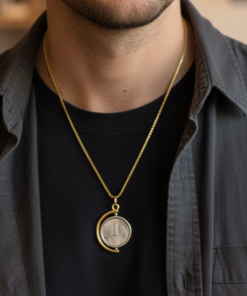 Pendant Mechanism: A precision-engineered rotatable frame (gimbal style) that allows the wearer to flip the coin to show either the front or back side while wearing it.