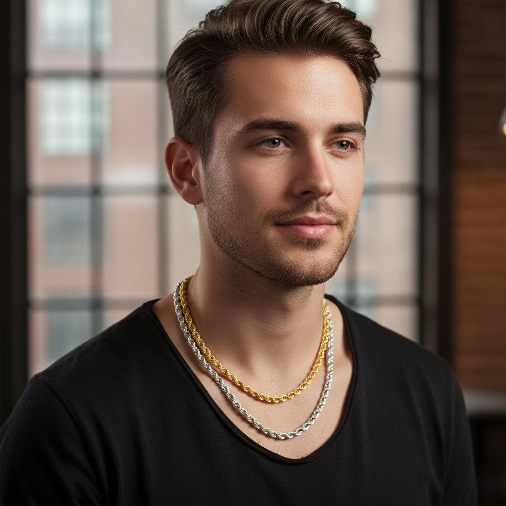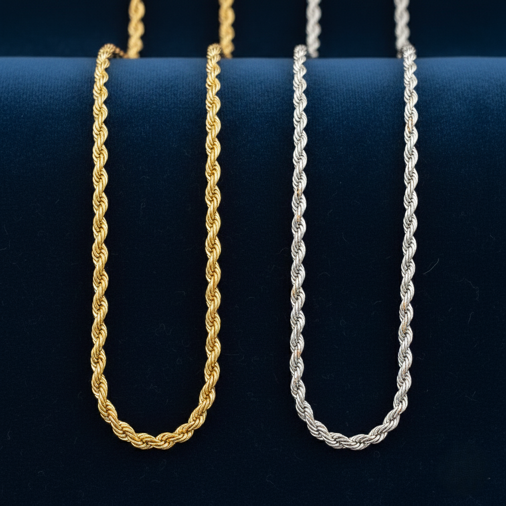 Classic Rope Design: Both chains utilize the timeless rope twist pattern, known for its durability, strength, and light-reflecting texture.