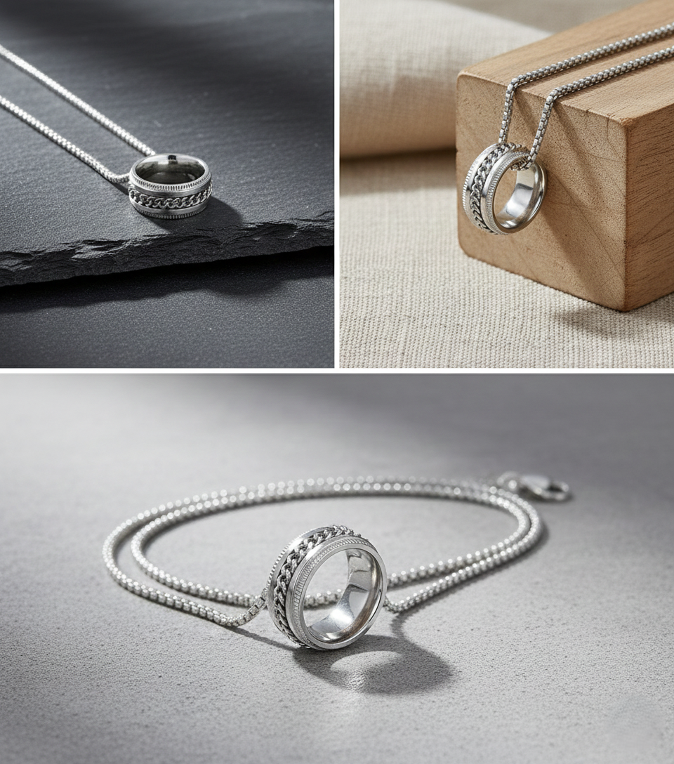Kinetic Element: If that center chain spins (which many “fidget” rings like this do), definitely mention it as a “stress-relief” feature.