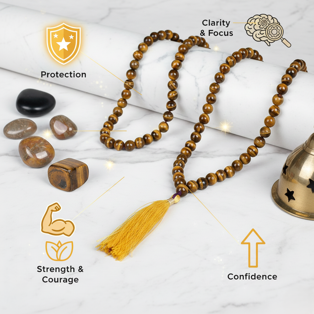 Authentic Gemstones: Hand-selected Tiger’s Eye beads known for their rich, earthy hues of amber, gold, and deep cocoa.