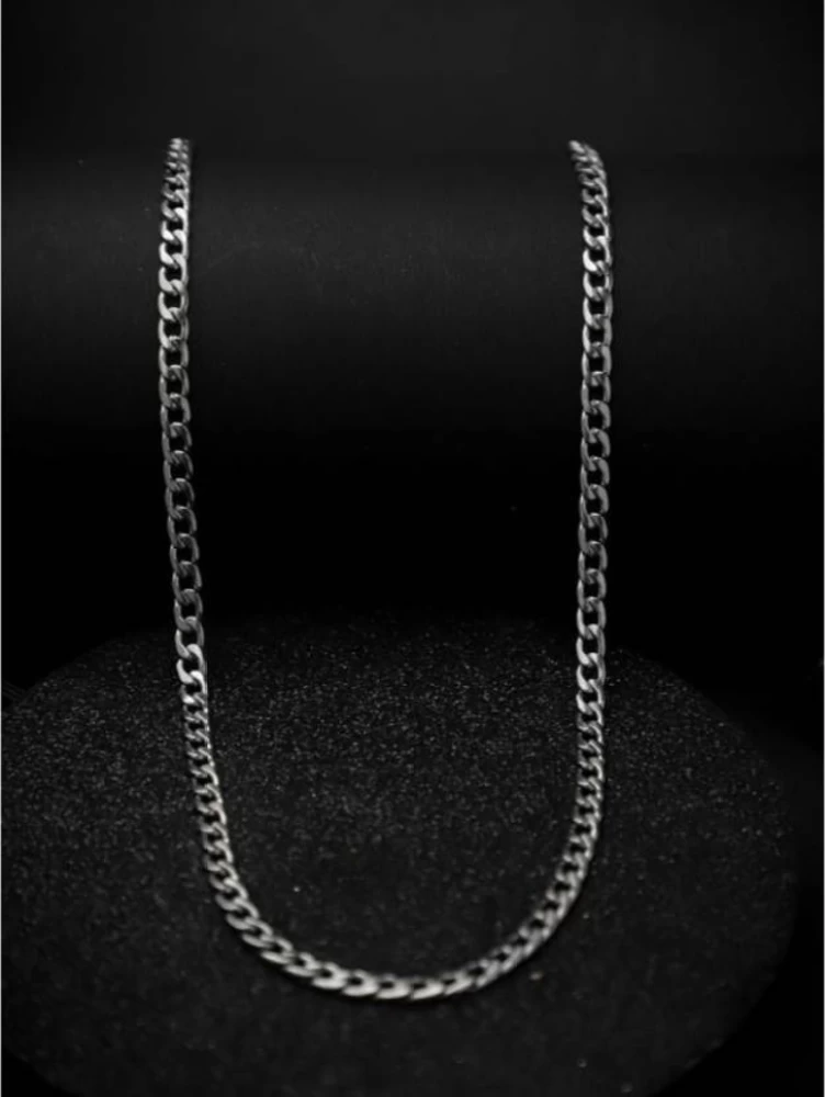 Silver-Tone Curb Chain: A classic, high-polish silver curb chain featuring flat, interlocking links that lie smoothly against the skin.