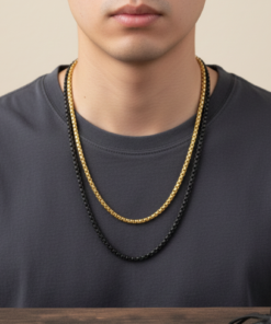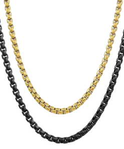 Elevate your daily style with this sophisticated 2-piece stainless steel chain combo. Featuring a striking contrast between radiant gold and sleek matte black, this set is designed for the modern individual who values versatility and bold aesthetics.