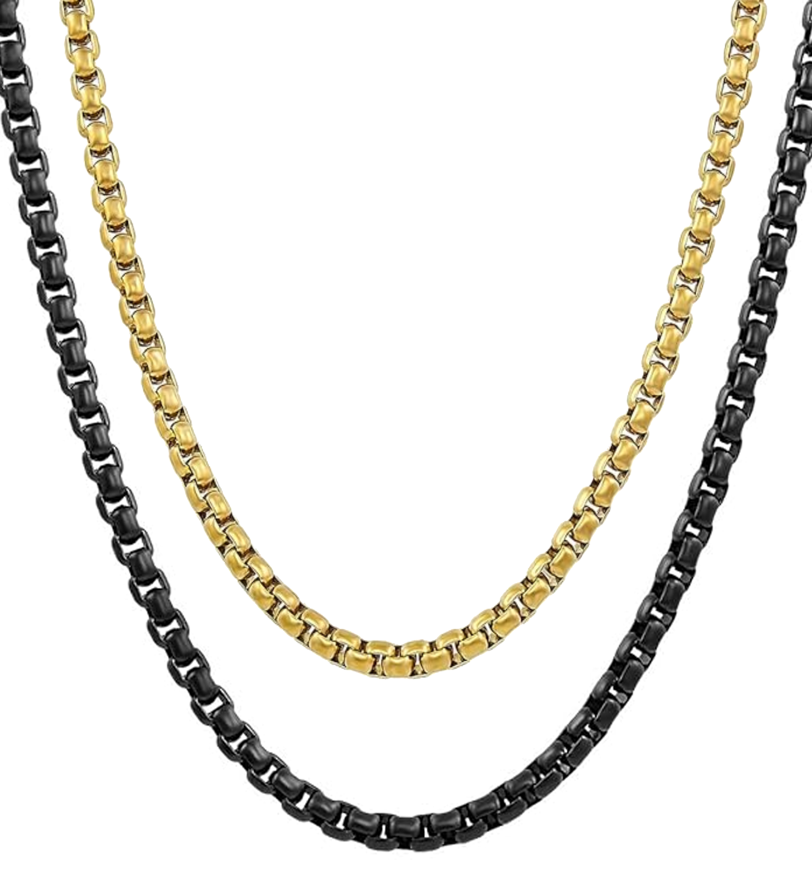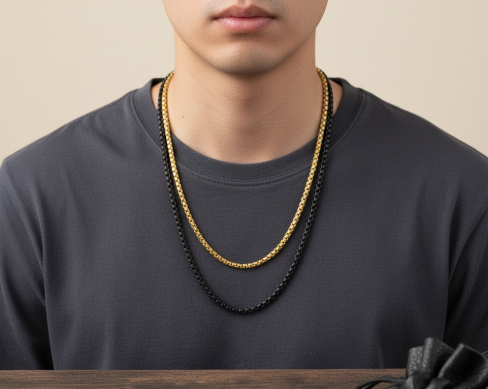 The Perfect Contrast: Includes one polished gold-toned chain and one deep matte black chain for a dynamic layered appearance.