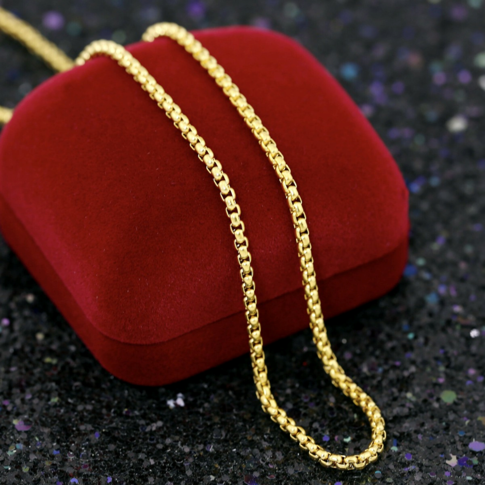 Contemporary Design: Features two classic box-style chains that offer a clean, geometric look suitable for any occasion.