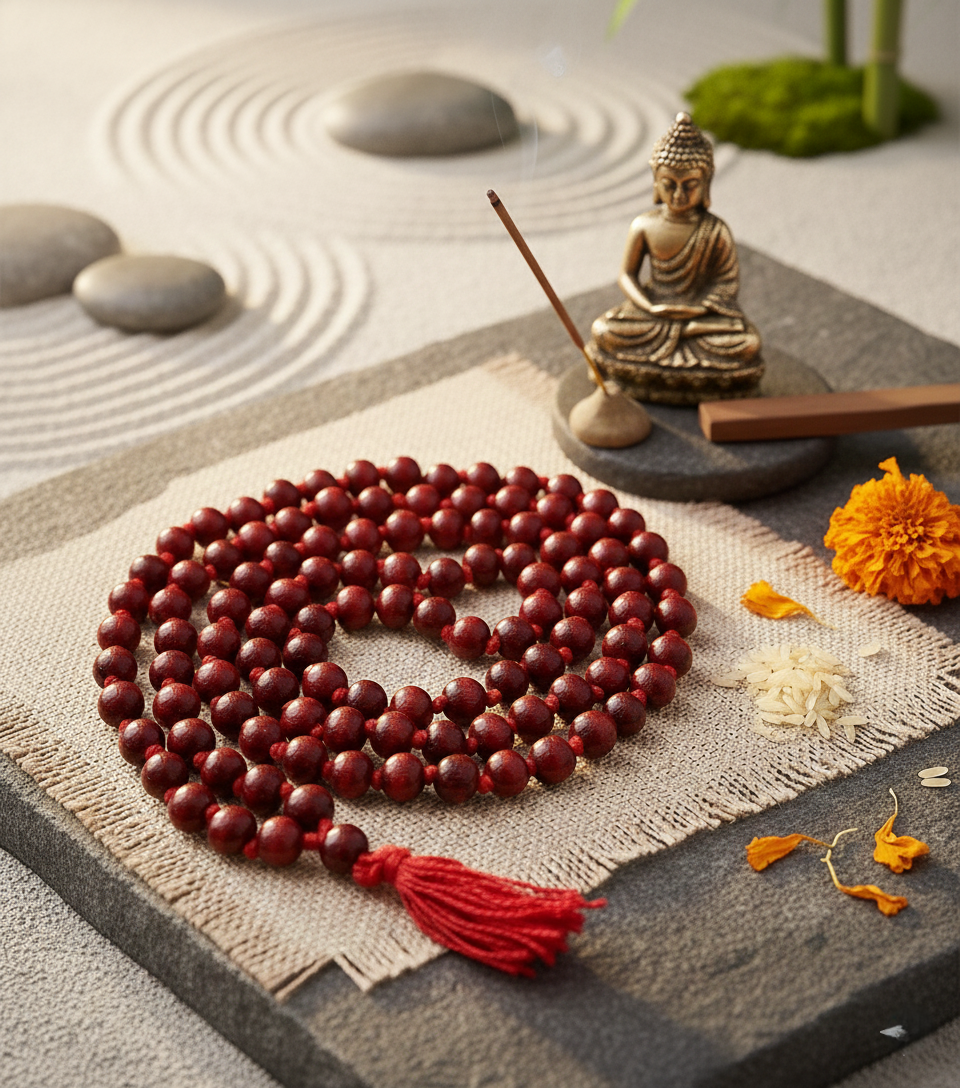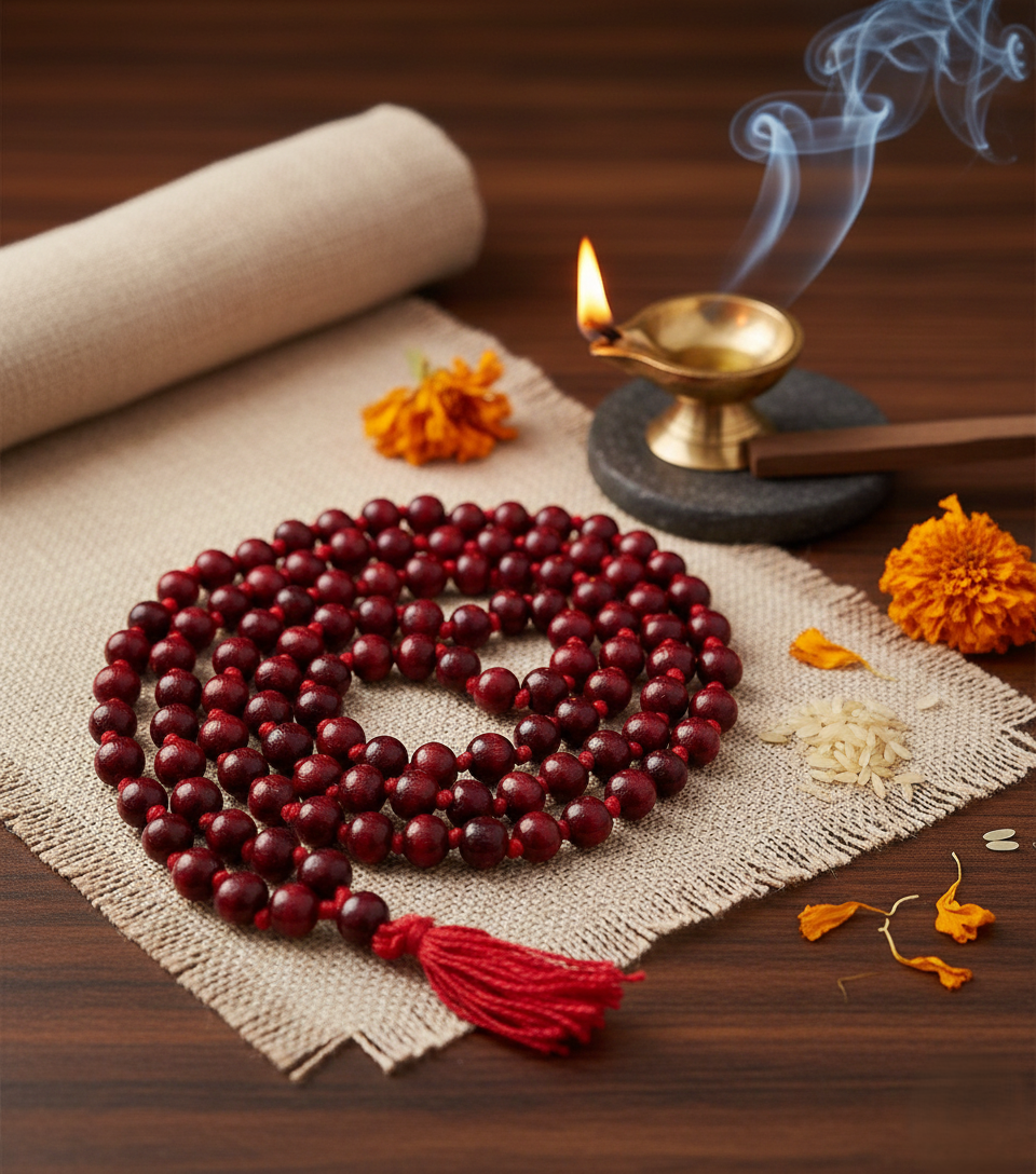 Sacred 108-Bead Authentic Red Sandalwood (Lal Chandan) Japa Mala