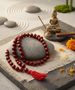 Red Sandalwood Japa Mala, also known as Lal Chandan, is a revered spiritual accessory carved from the heartwood of the Pterocarpus santalinus tree. Distinguished by its deep reddish-brown hue and natural woody grain, this mala is highly valued for its dense, heavy quality and its association with transformative spiritual energy.