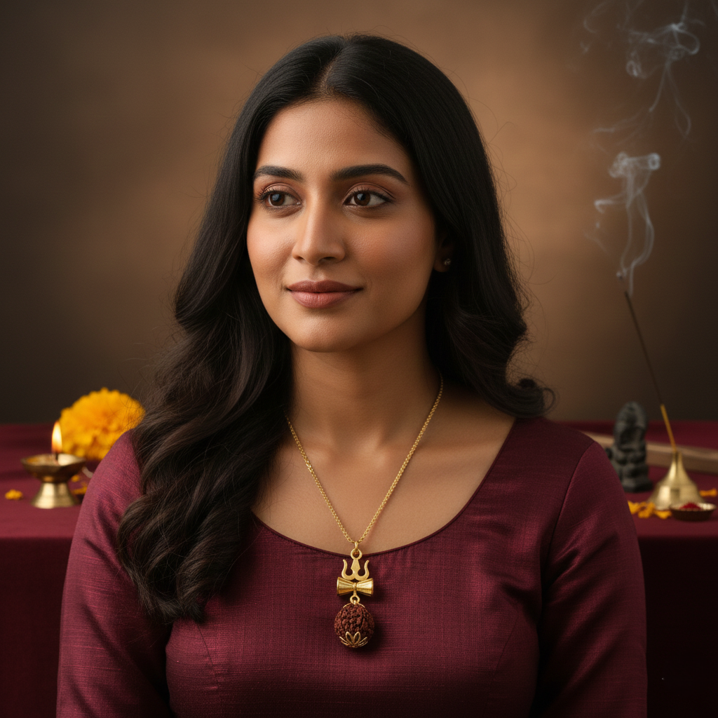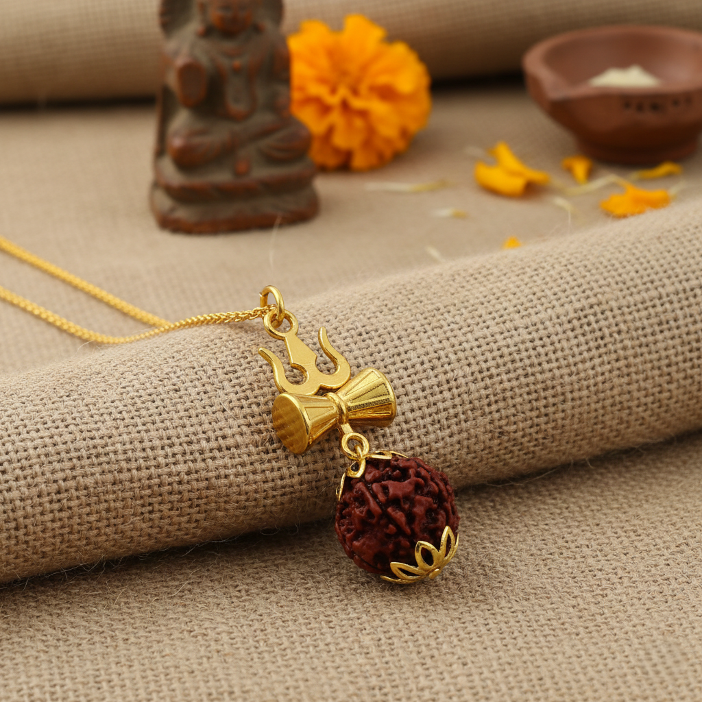 Embrace the divine energy of Lord Shiva with this masterfully crafted Trishul (Trident) Pendant. Designed as a symbol of protection, power, and spiritual awakening, this piece features an authentic Rudraksha bead suspended from a high-relief antique gold-finished Trishul. It is paired with a rugged, high-durability box chain, making it the perfect accessory for those who carry their faith with strength and style.