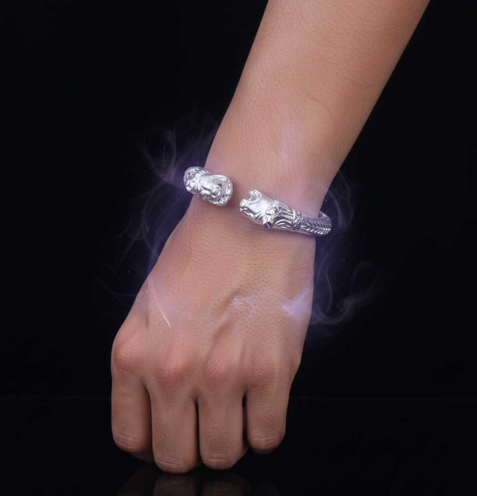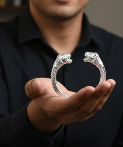 This iconic Mahakal Kada is a powerful statement of faith and inner strength. Crafted from a high-quality metal alloy with a lustrous silver-toned finish, the bracelet features a traditional open-ended “C” shape that balances ancient spiritual motifs with rugged, modern craftsmanship.