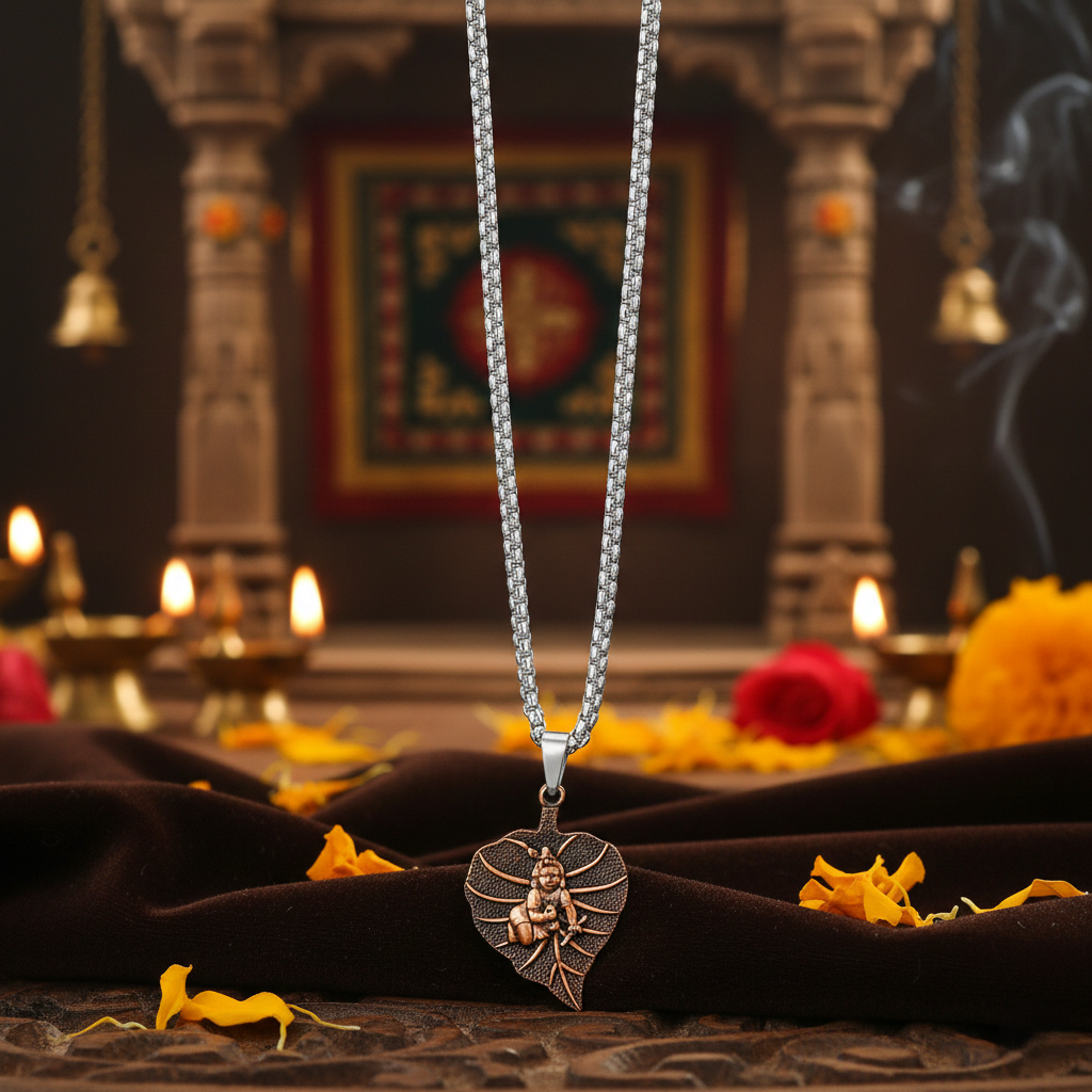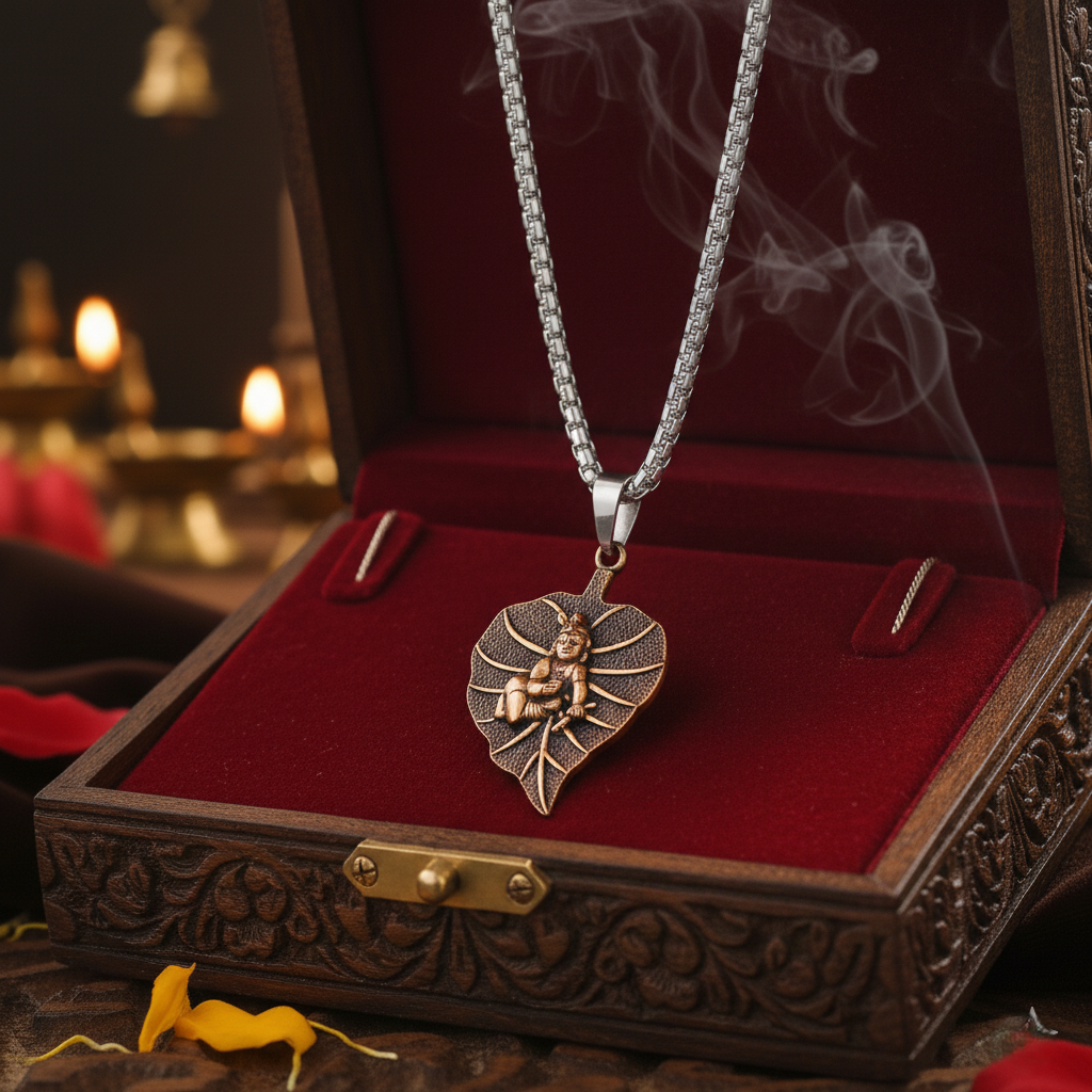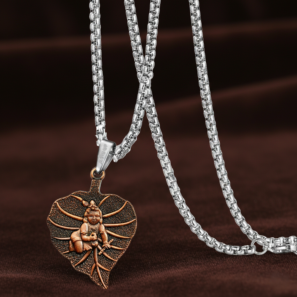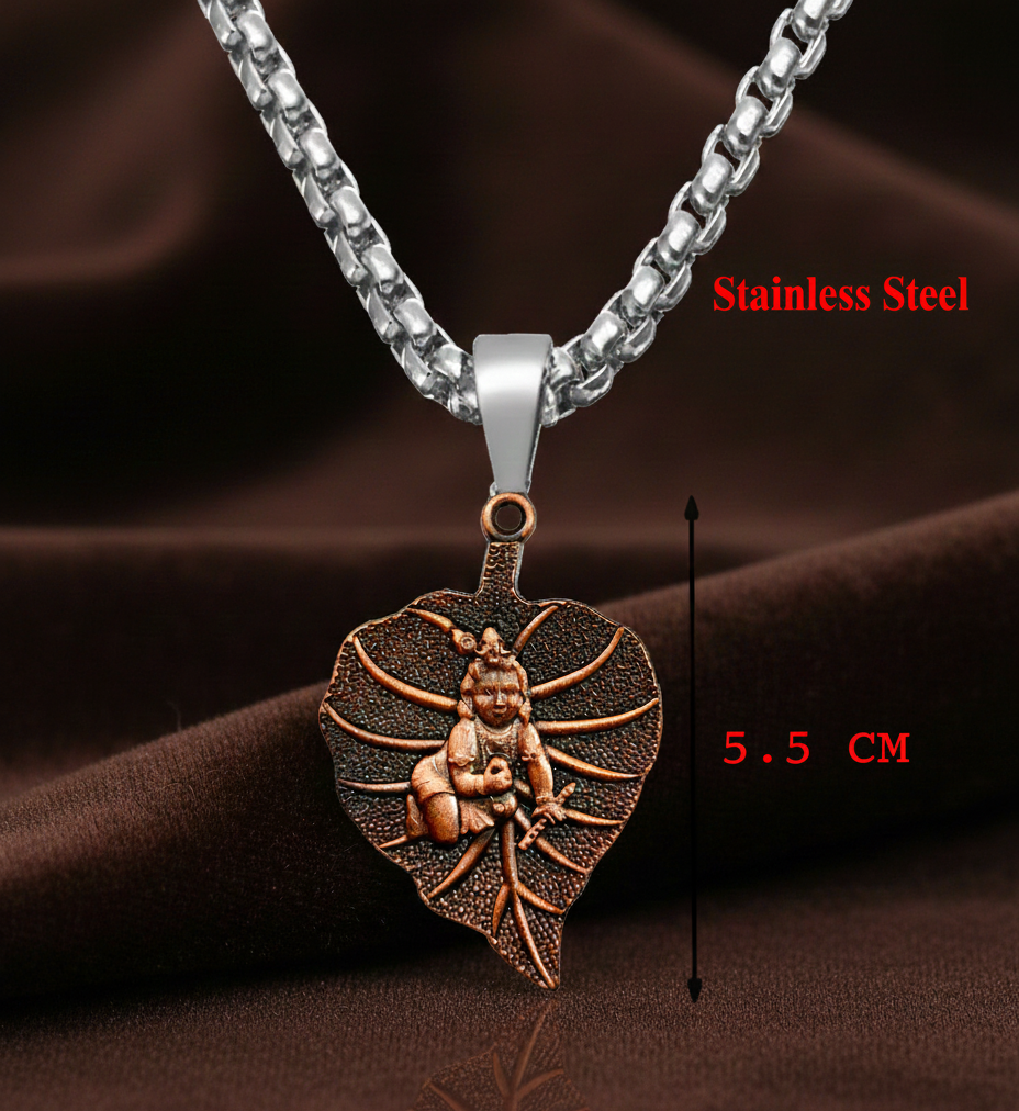 Symbolism & Style The leaf symbolizes the “Tree of Life” and new beginnings, while the figure of Krishna represents infinite love and protection. Whether worn as a statement of faith or a unique fashion accessory, this necklace radiates an aura of strength and spiritual grounding.