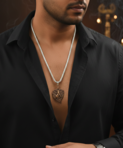 The Chain: Paired with a high-grade, polished silver-toned box chain (stainless steel style), the necklace offers a striking contrast between the traditional copper-toned pendant and contemporary metallic sleekness.