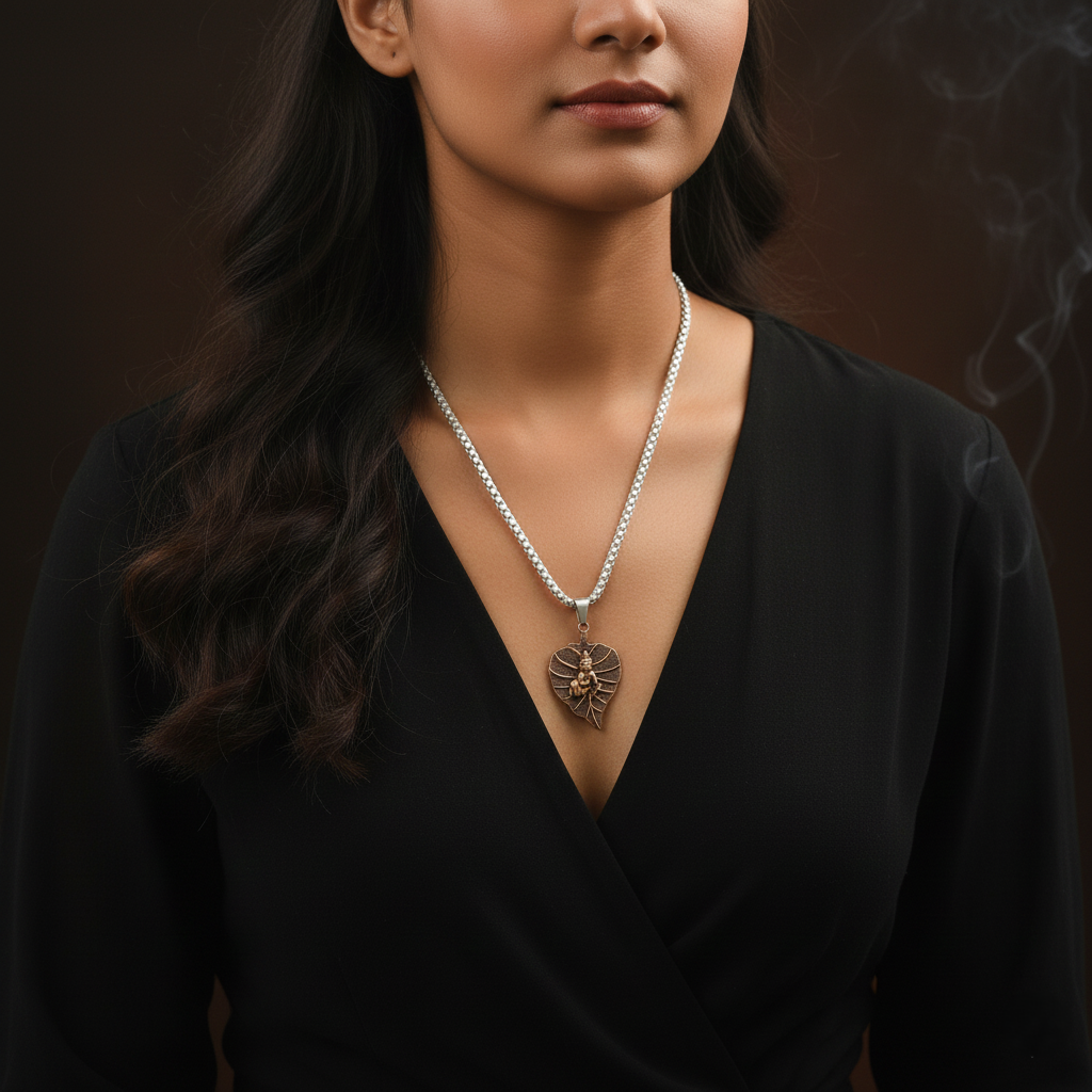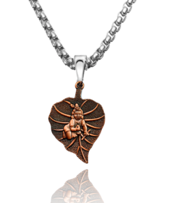 The Pendant: Cast in a rich, antique coffee-brown finish, the pendant showcases intricate textures—from the delicate veins of the leaf to the serene expression of the deity. The 3D styling adds depth, making the figure appear life-like and vibrant.