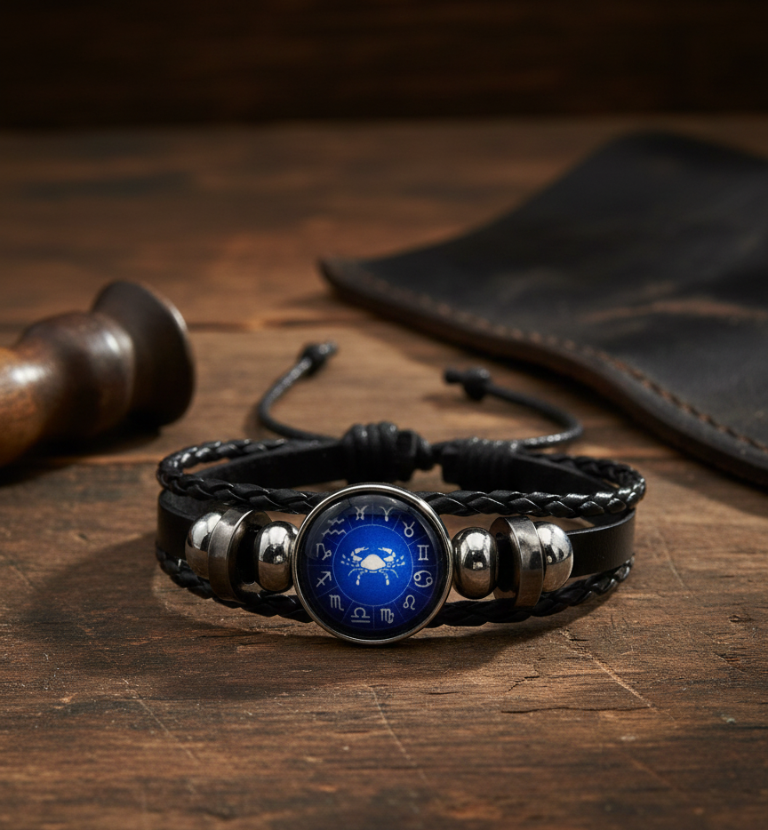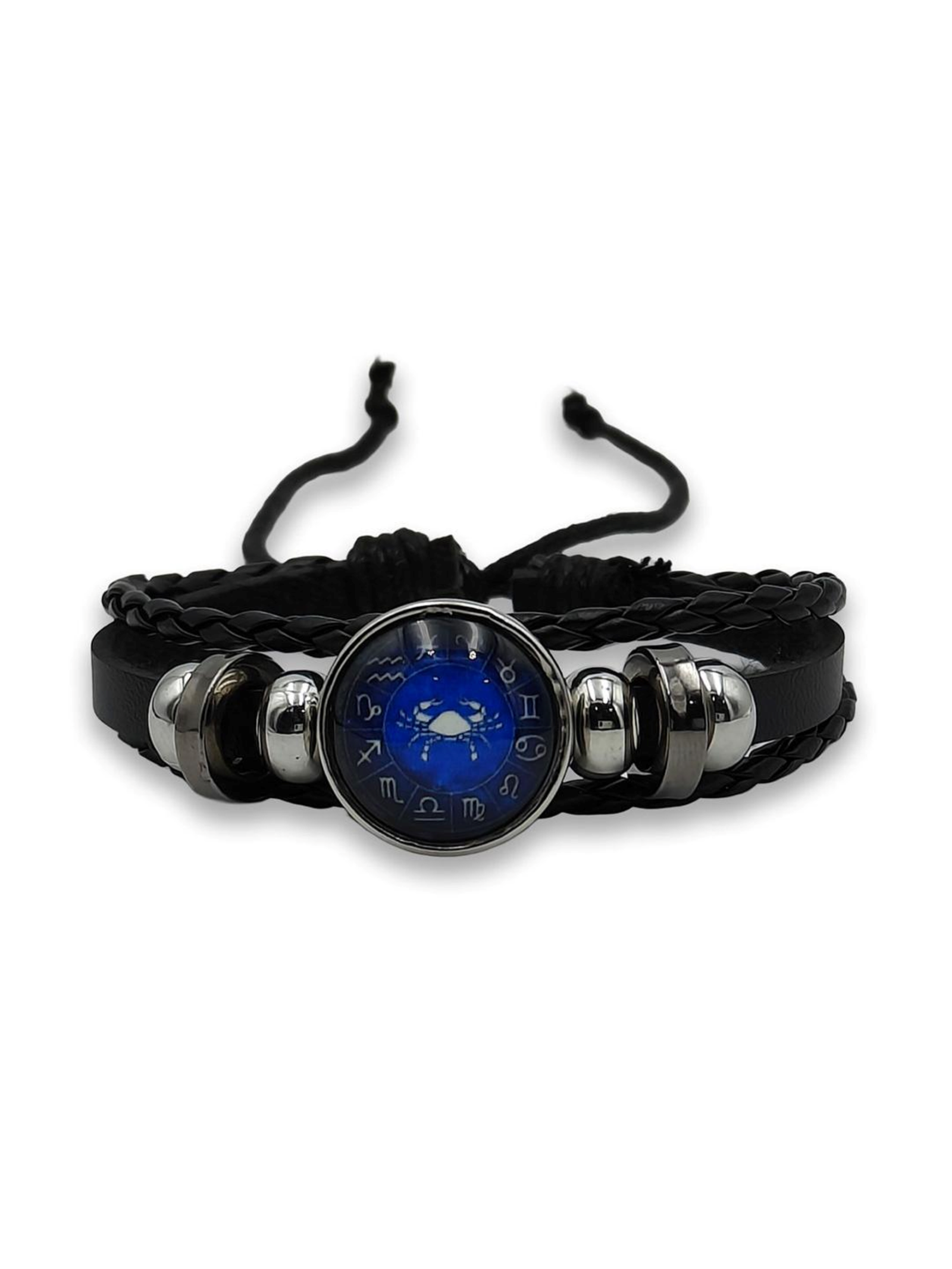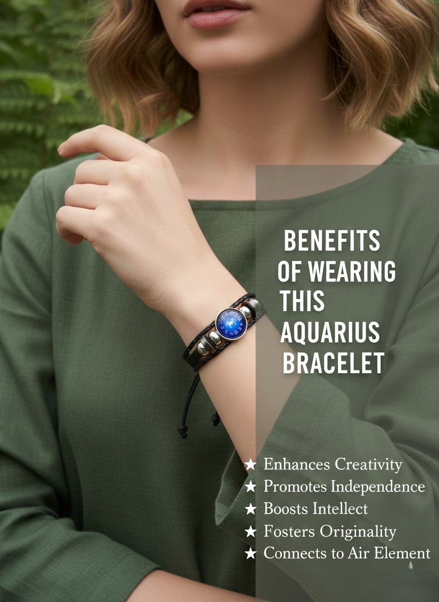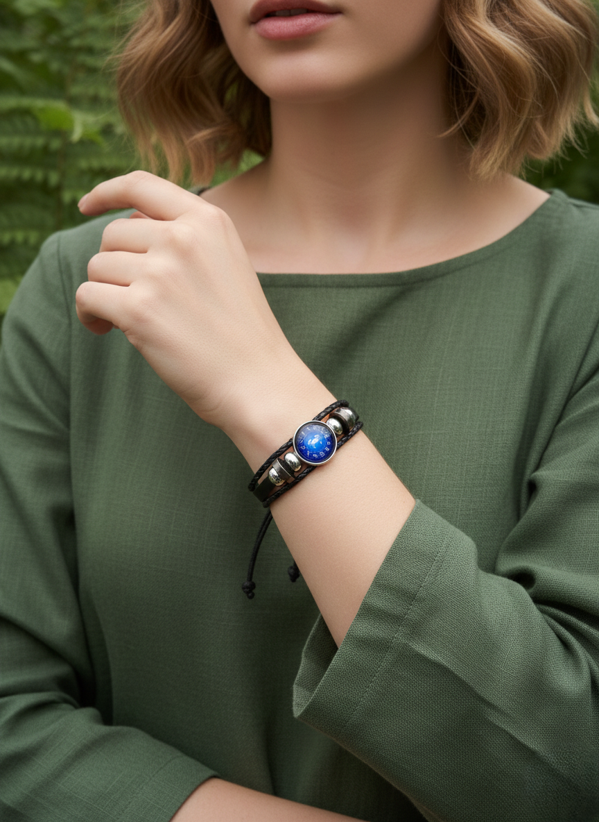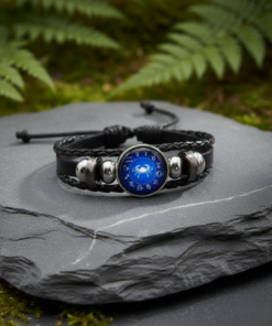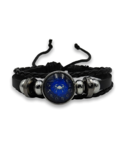 Ideal for Aquarius anyone who resonates with Aquarius traits like confidence, courage, and leadership, this bracelet makes a thoughtful gift or a powerful personal symbol. Channel bold energy with this striking zodiac leather bracelet. Designed around the Aries ram symbol, the centerpiece features a deep blue dial encircled by zodiac signs, giving it a cosmic, constellation-inspired look. The vivid blue face pops beautifully against the sleek black braided leather band.